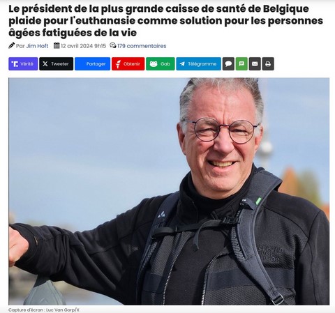 Luc Van Gorp, président de la plus grande mutuelle de santé de Belgique, la Mutualité chrétienne , a proposé l'euthanasie comme solution potentielle pour les personnes âgées qui sentent que leur vie est terminée.