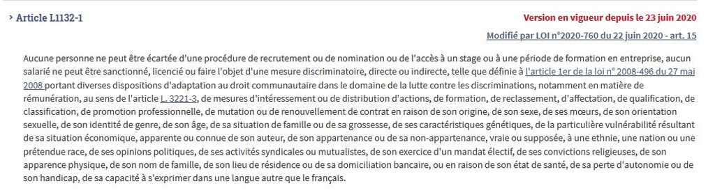 Pour faire court : « aucun salarié ne peut être sanctionné, licencié ou faire l’objet d’une mesure discriminatoire, directe ou indirecte…. en raison de son état de santé »